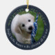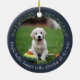 Navy Jingle Bells Pet Dog Christmas Ceramic Ornament. Celebrate your furry friend's very first Christmas in style with our Navy Ceramic Ornament! This delightful ornament features two photos, one on the front and one on the back, elegantly framed in navy and adorned with festive Christmas greenery and berries. The heartwarming phrase "Jingle Bells, Happy Tails, playing all the way" captures the spirit of the season for your precious pup. Personalise it with your dog's name and the year of their first Christmas celebration. Commemorate your dog's first Christmas with a special ornament just for them. Customise it now with your pup's name and the year, and cherish the joyful memories for years to come!
