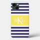 Navy Lemon Yellow Stripes Monogram Case-Mate iPhone Case