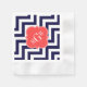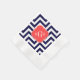 Navy Lg Chevron Coral Red Quatrefoil 3 Monogram Napkin