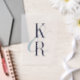 Monogrammed wedding vellum overlay with elegant letters in navy blue atop a light blue ampersand as an elegant detail for your wedding invitations. Navy blue and light blue monogrammed vellum overlay for your wedding invitations.