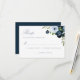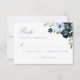 A wedding rsvp card with light blue and navy flowers. You can personalise the text and colour to match your own wedding theme.