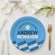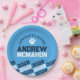Navy Blue & Baby Blue Pawprint Personalised Graduation Paper Plates - Half Repeating Congratulations