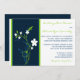 This modern navy blue, lime green, and white floral wedding invitation would be perfect for a spring or summer wedding. There is a text box on the back to add any extra text you may want, or you can remove the text instead. The text and paper is all customisable. It is shown here on basic paper. I would NOT use metallic gold, or silver paper as they will both severely alter the colour of the card. If you want an ivory colour instead of white, the champage metallic paper or felt paper will give that result. The linen paper will give a very crisp white look that would also look great with this invitation. ***PLEASE NOTE that if you change the font or size of the font, it may alter how your invitation prints. It will print the way you see it on your monitor, so if you have alignment issues, or sizing problems, please contact me for help before you order. I will not see your invitation once you order it, and Zazzle will NOT edit anything (typos, alignment, etc.). If you require assistance or would like any other matching items, please email your request to niteowlstudio@gmail.com.