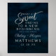 Navy Lustre Dark Blue Watercolor Design, with Silver Sparkle Typography, and beautiful watercolour background texture. With Modern Chic Script Fonts. A trendy & Luxurious style - Personalised Wedding a sweet ending to a new beginning Quote Sign!