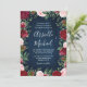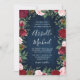 Navy Marsala Country Rustic Wedding Invitations - features a rustic navy blue wood background with greenery, roses and other floral elements in shades of blush pink, marsala, burgundy and more. NOTE: this invitation is presized to 5x7 inches. A 4.5 x 6.25 inch template is also available in this design. View the collection found on this page for that product.