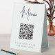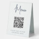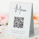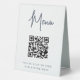 Make it easy for your wedding or event guests to view your menu selections with this QR code table tent sign. "Menu" appears at the top, with brief instructions beneath. Enter the url for your menu, and the QR code will update. Guests can scan the code with their phones to see your menu selections.