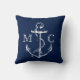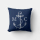Navy Monogram Nautical White Sketch Anchor | Cushion