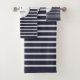 Navy Monogram Stripes Bath Towel Set. Nautical design with monogram in circle on navy and light blue stripes. Customize this product with your initial using Zazzle's customization tools. We invite you to our store, Simon and Grace, for matching products and more.