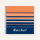 Navy, coral and white horizontal lines adorn the front of this notebook.