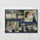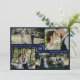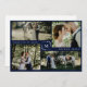 Monogrammed wedding thank you card in navy blue with white fonts, your monogram inside a square greenery frame, and four wedding photos in a symmetrical collage. Add your thank you note by hand on the back. Photo collage wedding thank you card personalised with your monogram, names, and wedding date.
