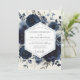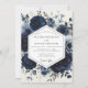 This design features a dramatic arrangement of deep navy blossoms and foliage. The rich color palette evokes a sense of refined romance and moody elegance. It's perfect for a sophisticated, intimate occasion.