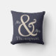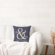 For the Mr. and Mrs., this Couple's pillow features an oversized ampersand with the couple's last name that you can personalise with your name. Shown here in a navy blue background with matching navy blue and white stripes on the reverse side. You can change the navy background colour on both sides of this pillow by choosing the "customise it" button and selecting a different background colour. Match any decor colour scheme!