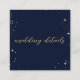 Celestial mystical personalised QR code wedding enclosure card featuring galaxy milky way midnight sky with star dust, crescent moon and other astrological symbols in navy blue and golden colours. This card is easily editable. If you need help with the customisation of this card or you need more matching products for this collection kindly message me via Zazzle.