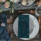 Navy Mystical Gold Stars Moon Astronomy Wedding Menu