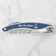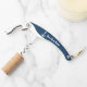 A nautical waiter's corkscrew with a bold navy blue handle featuring a white anchor and custom boat name in script. The all-navy design with white detailing creates a sharp, maritime-inspired bar tool for onboard entertaining or home use. A perfect personalized gift for boat captains, sailing lovers, or anyone who appreciates nautical style. All text is fully customizable.