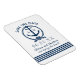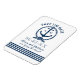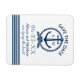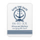 A crisp and classic save the date magnet featuring a navy anchor and rope circle monogram centerpiece with couples' initials — perfect for coastal, nautical, or beach wedding celebrations. The clean white background and bold stripe footer give this design a polished, preppy feel. All initials, names, date, and location are fully editable.