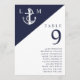 These navy blue and white nautical minimalist, elegant wedding table numbers can be personalised with your information in modern typography. Designed by Thisisnotme©