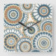 Navy Orange Multi-Mandala Design Square Wall Clock