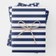 Three patterns in navy blue and white: basic stripes, polka dots and random spots.