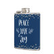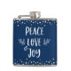 Navy Peace Love Joy Modern Typography Gold Dots Hip Flask