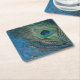 Navy Peacock Square Paper Coaster