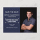Navy blue personalised photo graduation "Save the Date" postcard. Add your photo and information.