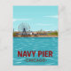 A bright, flat-style illustration of Chicago's Navy Pier, featuring the iconic Ferris wheel, buildings, and the deep blue water of Lake Michigan. Perfect for a summer vacation memory.