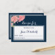 Chic and classy bride to be recipe postcard with blush pink peonies on midnight navy blue background. Ideal for your night garden floral themed bridal shower.