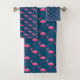NAVY PINK FLAMINGO BATHROOM TOWEL SET