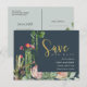 NAVY PINK FLORAL DESERT CACTI FAUNA SAVE THE DATE ANNOUNCEMENT POSTCARD