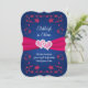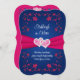 If you've found the love of your life and want to invite all your family and friends to witness the joining of your two lives and hearts then this lovely bracket-shaped wedding invitation in navy blue, fuchsia pink, and white with joined hearts over a hot pink ribbon image running across the centre is sure to get everyone's attention. The front side is navy blue with pink flowers and vines with the names of the bride and groom above the hearts in white script. Below the hearts, is a customisable verse that says, "Two lives, two hearts, joined together by friendship, united forever in love" in white. The backside is fuchsia pink with the same hearts from the front at the top of the backside with pink flower and vine arches at the top with your wedding ceremony and reception details printed on in blue. RSVP details are also printed in blue at the bottom, making this a very affordable option for those couples on a tight budget. If you need any additional matching items, please email your request to niteowlstudio@gmail.com or use the Zazzle chat feature to get in touch.