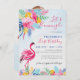 Navy Pink Tropical Wild Forest Flower Birthday Invitation