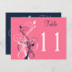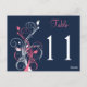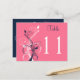 This reversible pink, navy blue, and white floral table number postcard matches the wedding invitation shown below. **You must change the number 11's to each of the table numbers you need, add it to your cart, and then return and repeat the process until you have all the individually numbered cards that you need in your cart. Stand it on a small easel, or in your centerpieces. If you need assistance, email niteowlstudio@gmail.com.