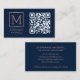 Navy QR Code Logo Monogram Rose Gold Business Card