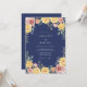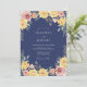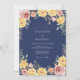 A deep navy background sets a sophisticated stage for vibrant watercolor florals in shades of sunny yellow, peach, and blush pink. Painterly roses, ranunculus, and delicate green foliage create a romantic atmosphere. This botanical design highlights elegant artistry through soft brushstrokes and rich colour contrast.
