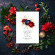 Crimson red and navy blue watercolor floral wedding invitation with faux foil gold foliage and vintage velvet damask reverse.