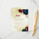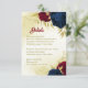 Beautiful wedding reception details enclosure card featuring dark navy blue and red flowers and gold leaves .