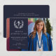 A formal but modern graduation photo announcement to celebrate professional nursing qualifications. Featuring a full-bleed photo with a colour overlay and the Asclepius symbol (with the 'RN' abbreviation) surrounded by a laurel wreath. The template text for the graduate’s details is completely customisable, so the font size, style, colour and placement can be changed. The back features a solid coloured background and template text for a longer message. If you would prefer to include no text on the back, just delete it before ordering. If you would prefer a photo on the back of the card, delete both the coloured background and the template text and upload your own photo. The design is available in other colours and with different medical qualifications in my store.