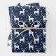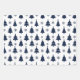 Navy Reindeer, Christmas Tree and Holiday Pattern Wrapping Paper Sheet