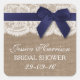 Navy Ribbon On Burlap & Lace Bridal Shower Square Sticker