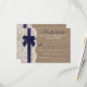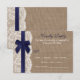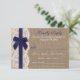 Navy Ribbon On Burlap & Lace Wedding RSVP Card