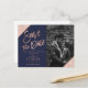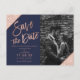Navy Rose gold glitter script photo save the date Postcard