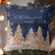 Navy Rose Gold Glitter Winter Forest Family Name Cushion