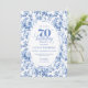 Celebrate a milestone in timeless style with this 70th Birthday Invitation featuring elegant French Toile de Jouy navy roses. Designed in navy blue, royal blue, dusty blue, and deep blue floral tones, this personalized invitation adds classic charm to any celebration. Perfect for a chic, vintage-inspired party, it can be customized with name and details for a truly memorable event.