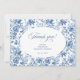 Express your gratitude in timeless style with this Navy Roses Blue Toile de Jouy Wedding Thank You Card. Featuring elegant floral navy, royal, dusty, and deep blue roses with classic French toile patterns, this card adds sophistication to your wedding stationery. Perfect for sending heartfelt thanks to guests, family, or friends, it’s a luxurious, personalized, and printable keepsake for your special day.