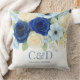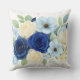 Navy Royal Bue Wedding Watercolor Ivory Flowers Cushion