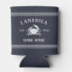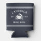 These cool personalised shore house can coolers feature your family name on a navy blue background, with your year established and a crab illustration. Rope stripe detailing at the top and bottom completes the design for a rustic nautical look.