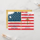 Patriotic flag and gold anchor military retirement party invitations- Faux gold metallic nautical anchor on the right side. Background is rustic, grungy USA flag stars and stripes. Reads 'Navy Retirement' in gold colour lettering. Below it reads 'Please Join Us in Honouring 25 Years of Military Service by' in blue. (Customised years of service.) Personalised rate and name below in script. Retirement party information on the right in blue. Gold look vertical ribbon in the centre separates the two halves. Back has matching, solid gold colour background and gold metallic look ribbon borders. Note: All images are printed. Not actual metal. Sophisticated, military party retirement invitations. Click Customise option to change text colours, size, and font styles. Visit our online Zazzle.com/angela65 shop for more personalised, military invitations.