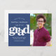 Navy save date graduation photo bold typography invitation postcard