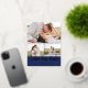 Navy Script 3 Photos Wedding Save Our Date Foil Invitation Postcard